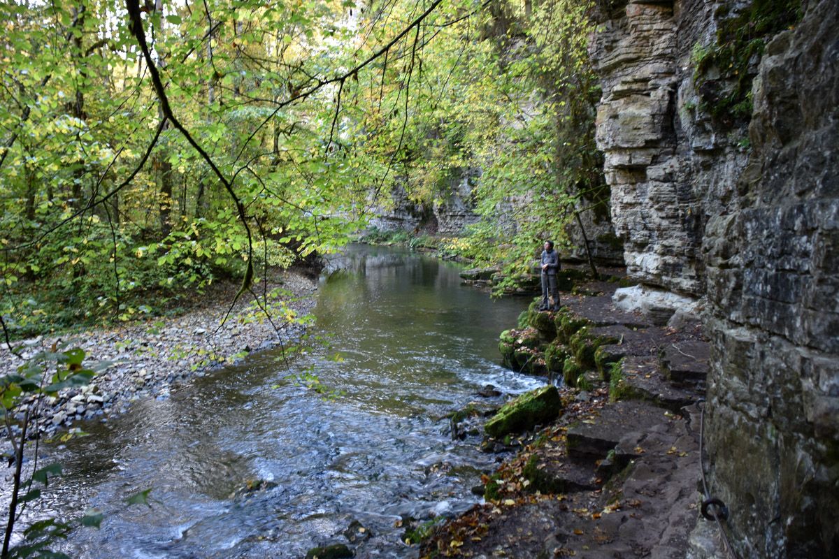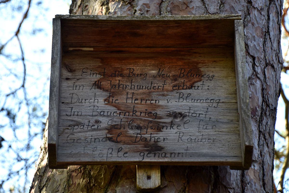 Bei schönstem Herbstwetter starten wir zunächst in Richtung Räuberschlössle und zur Stallegger-Brücke. Der Weg ist nicht einfach zu begehen und wir sind froh um unsere Wanderstöcke mit welchen wir nun bergauf aus der Schlucht heraus zum Räuberschlössle gelangen. Die Felsenburg Neu-Blumberg wurde einst von den Rittern aufgegeben und diente später als Unterschlupf für Räuber und Gesindel. Übrig geblieben ist eine Burgruine mit einzelnen Mauerresten. Beeindruckend der Blick nach unten. In der Wutachschlucht ist wirklich Vorsicht geboten. Wir treffen auf viele andere Wanderer, die das Räuberschlössle ebenfalls für eine Rast nutzen. Wer die Einsamkeit sucht, ist in der Wutachschlucht wahrscheinlich an der falschen Stelle – besonders an einem sonnigen Wochenende wie diesem. Auffällig ist, dass es sich auch um viele junge Leute handelt. Keine Frage, das Wandern ist angesagt und auch bei den Jüngeren wieder voll im Trend.