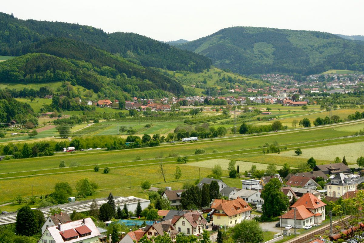 Nach dem Anstieg und ca. 1,4 km habe ich endlich den Pavillon am Steinacher Kreuzbühl erreicht. Die Stelle nutzte ich für eine kurze Pause, um die Aussicht auf das Kinzigtal mit den Orten Steinach, Haslach, Bollenbach, Schnellingen und Biberach zu genießen und natürlich noch ein paar schwarzwald-typische Landschaftsfotos zu machen. Danach erstmal die Lage und Größe des Geocaches gecheckt. Zum Cache war es dann gar nicht mehr so weit!