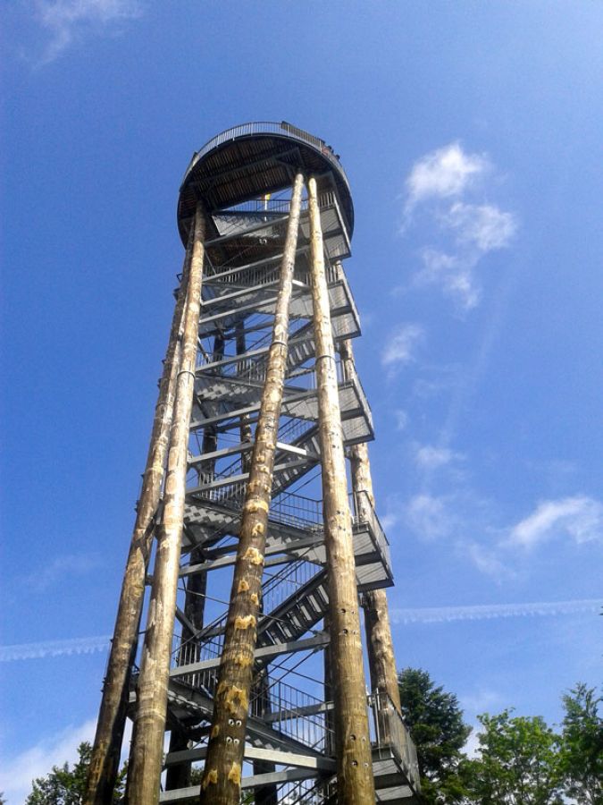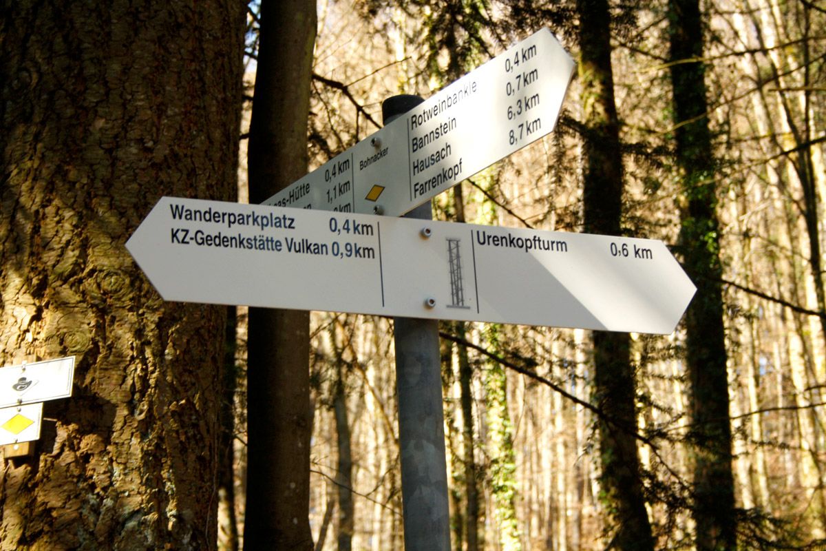 Jetzt wurd's anstrengend. Die Beine wurden schwerer. Ich bin eben kein geübter Wanderer und auch im Alltag eher lauffaul als aktiv ;-) Das nächste Schild machte mir aber schon wieder mehr Hoffnung: Urenkopfturm 0,6 km! Die Wanderwege sind zum Glück alle gut beschildert und so findet man den Urenkopf-Turm auch, wenn man sich im Haslacher Wald nicht besonders gut auskennt. Ansonsten einfach den Menschengruppen folgen, die besonders bei schönem Wetter dorthin strömen. Der Urenkopfturm ist nunmal ein beliebtes Reiseziel bei Wandertouren.
