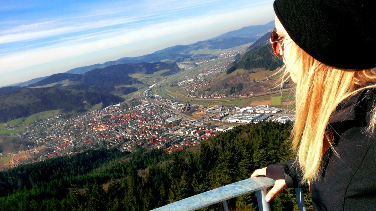 Dort angekommen, haben wir uns erst einmal eine kleine Pause gegönnt. Die hat man sich auch wirklich verdient. Das erste Stück ist meiner Meinung nach nämlich das Schlimmste! Außerdem kann man die kleine Pause hervorragend nutzen, um die Aussicht zu genießen. Schon aus dieser Höhe habt ihr einen tollen Blick über die Dächer von Haslach. Überzeugt euch am besten selbst.