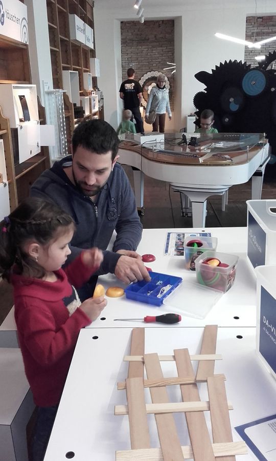 Während Hanna ein Jojo herstellt, schaut sich Jonas die Funktionen eines Klaviers an. Es gibt einfach keine Minute, in der man nichts Neues im Museum entdeckt.