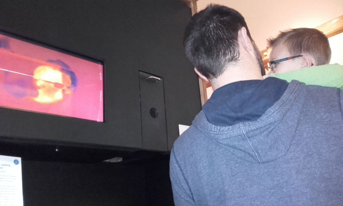 Bei der Wärmebildkamera erklärt Papa, was die Feuerwehr mit Hilfe dieser Erfindung alles während und nach einem Brand herausfinden kann.
