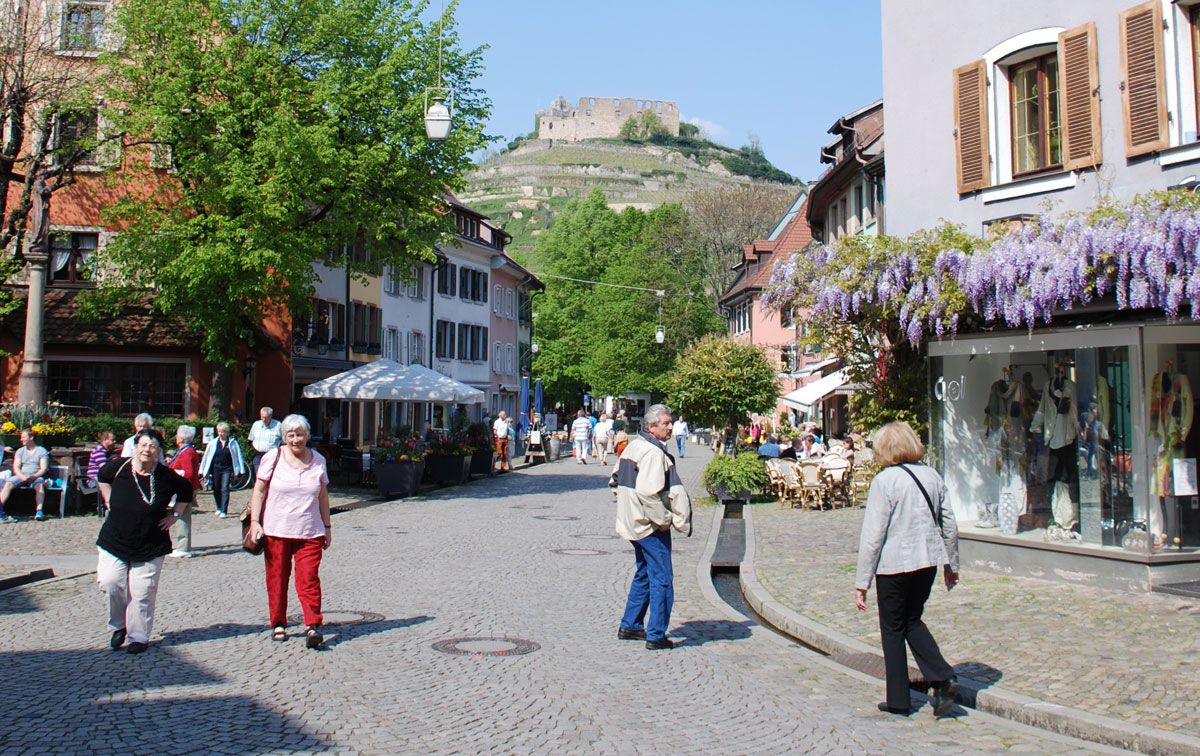 Sie passieren nun die Kreisstadt Offenburg, hier gibt es schon seit 1872 den Weinmarkt und die Weinmesse. Wenn Sie im Herbst unterwegs sind, sollten Sie sich nach dem Termin des Offenburger Weinfestes erkundigen. Ein Muss! Auf Ihrem Weg nach Süden folgt nun der Bereich Breisgau mit so namhaften Orten wie Freiburg mit seinem Münster, seiner schönen Innenstadt, seinem Kulturleben, eine junge Stadt geprägt von Studenten aus aller Herren Länder. Ganz in der Nähe auch das Glottertal, ehemals berühmt durch die Schwarzwald-Klinik.