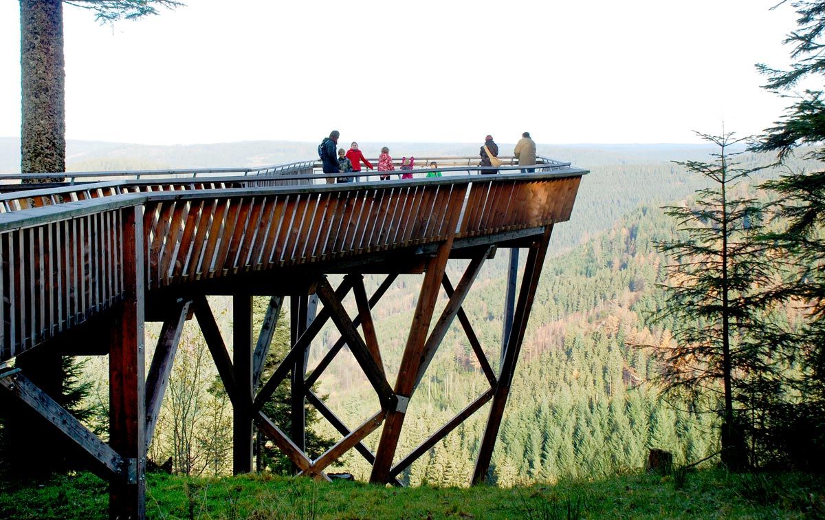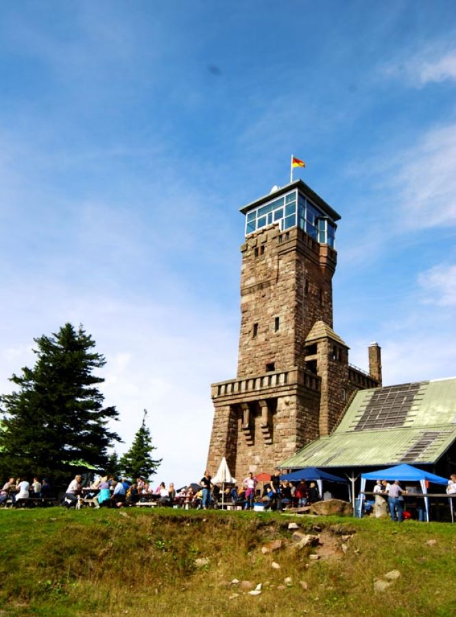 Auch viele weitere Berggasthöfe an der Strecke laden zum Einkehren ein, um sich für die weitere Erkundung der Schwarzwaldhochstraße zu stärken. Auf dem Weg nach Freudenstadt sollten Sie den Hornisgrinde Aussichtsturm nicht verpassen. Die Hornisgrinde (1.164 m ü. NN) ist der höchste Berg des Nordschwarzwaldes. Der 1910 erbaute Aussichtsturm war rund 60 Jahre für die Öffentlichkeit verschlossen, bis er 2005 wieder für die Besucher zugänglich gemacht wurde. Eine weitere Aussichtsmöglichkeit bietet der aus Stein gefertigte Mehliskopf-Turm oder die Aussichtsplattform am Schliffkopf - genießen Sie bei schönem Wetter die Sicht über den Mittel- und Südschwarzwald, bis zu den Alpen, der Rheinebene und den Vogesen.