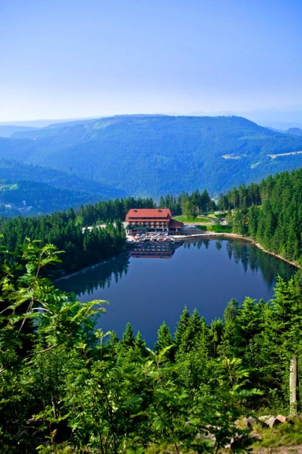 Der sagenumwobene Mummelsee wirkt geradezu mystisch in Mitten der Wälder und ist der größte der sieben verbliebenen Karseen im Schwarzwald. Auf 1036 Metern liegt der rund 3,7 Hektar und 18 Meter tiefe See, sein Ufer lädt zum Verweilen ein - wie wäre es mit einer kurzen Rast, einem guten Mittagessen, einem zünftigen Vesper oder einer Schwarzwälder Kirschtorte im Berghotel.