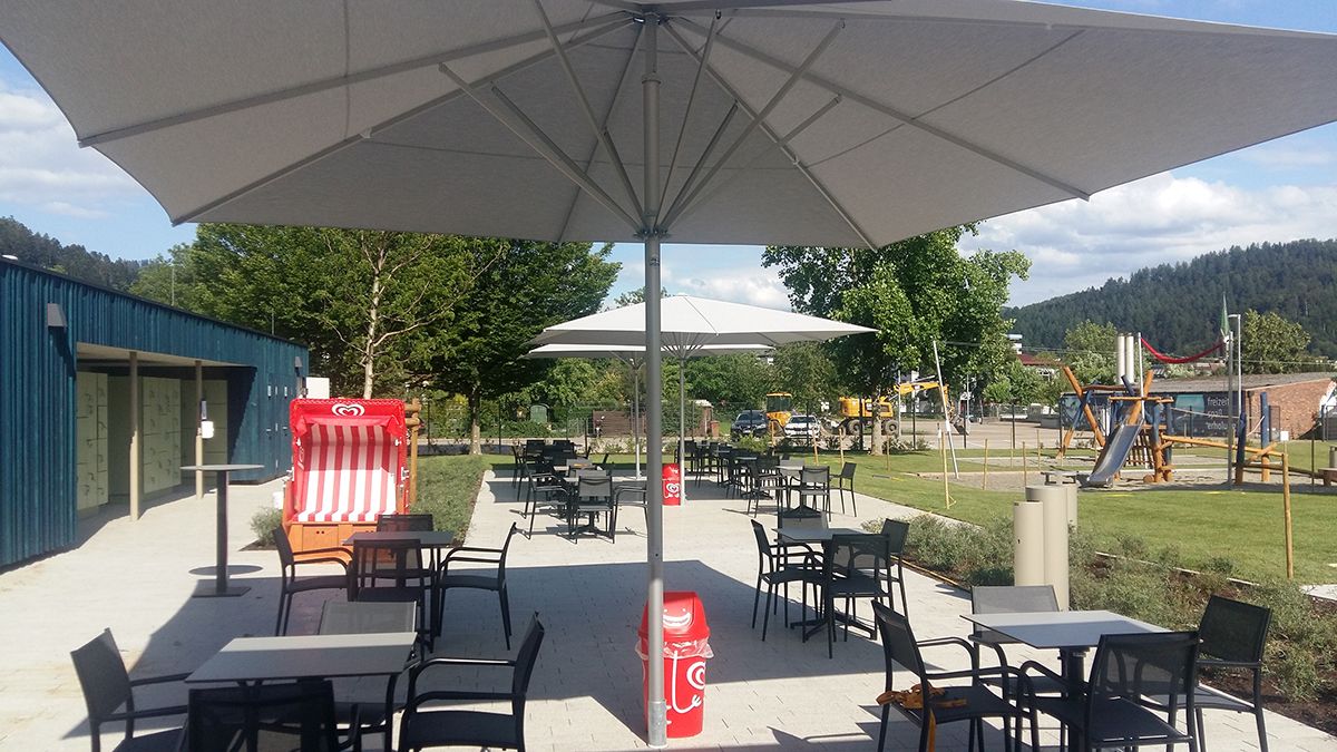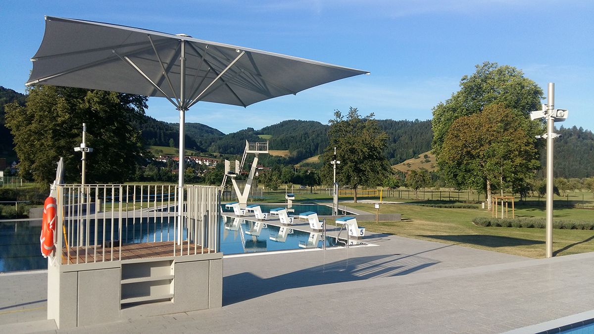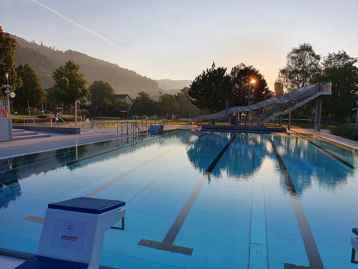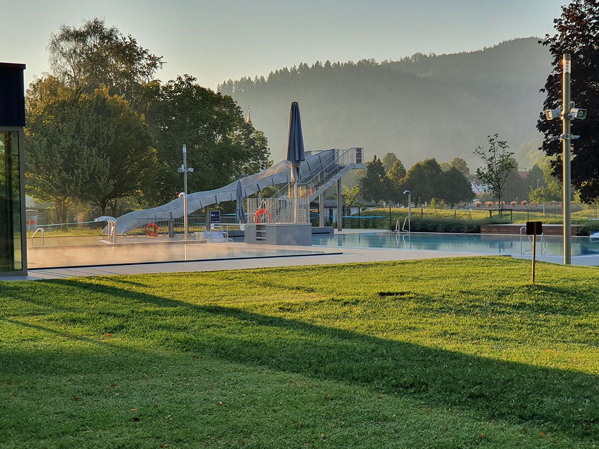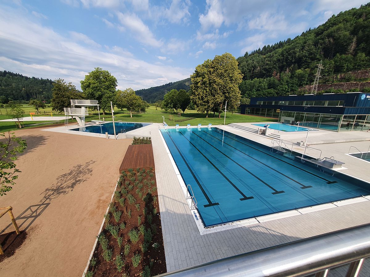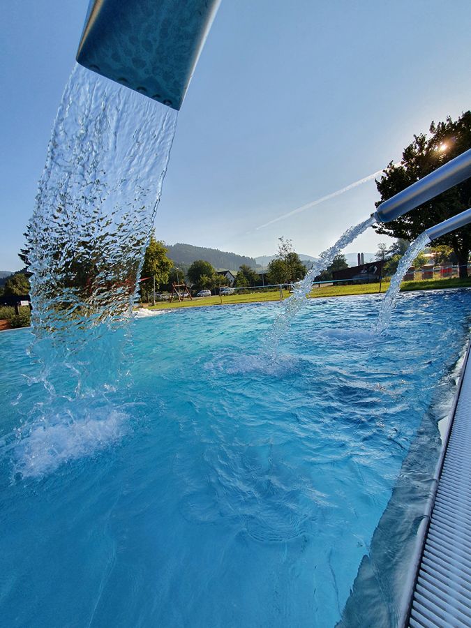 - Freibad mit Sportbecken, Nichtschwimmerbecken, Breitwellenrutsche, Springerbecken und Wasserspielplatz