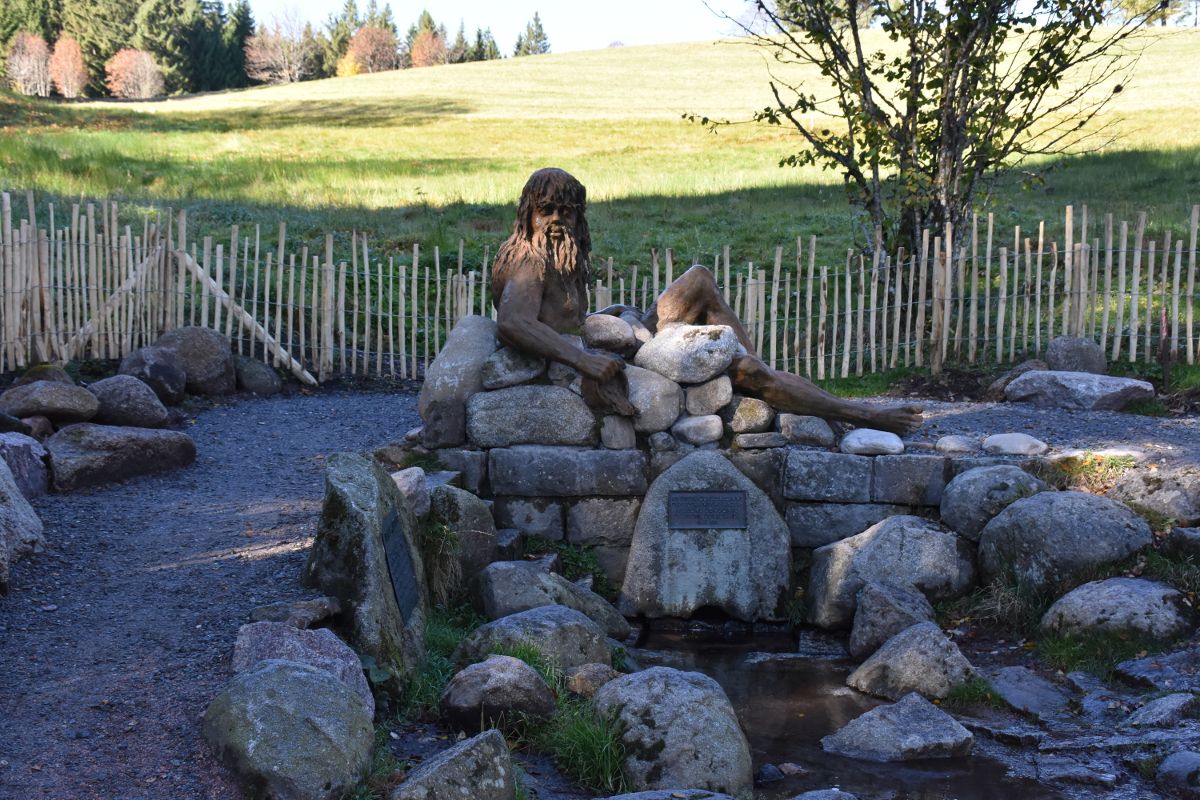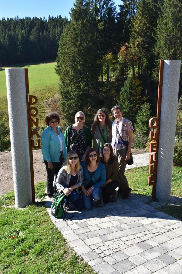 Nun aber weiter zum Kolmenhof. Chefin Katharina Dold empfängt uns herzlich und lädt uns nach einem Begrüßungssekt ein, den erst kürzlich renovierten Gastraum und eines der renovierten Zimmer zu besichtigen. Moderne wird hier gekonnt mit der Tradition kombiniert. Wir sind begeistert. Bevor wir uns ein leckeres Mittagessen schmecken lassen, statten wir Donauquelle und Danuvius, dem römischen Flussgott, einen Besuch ab. Die Bronze-Skulptur wacht seit 2017 über die Donauquelle beim Kolmenhof. Die Quelle der Breg, dem Hauptquellfluss der Donau, entspringt hinter dem Kolmenhof, rund 100 Meter von der Wasserscheide Rhein/Donau entfernt. Die Frage, ob dies nun die richtige Donauquelle ist, da ja bekanntlich Brigach und Breg die Donau zu Weg bringen, ist leicht zu beantworten. Der Bregquelle ist die mündungsfernste Quelle der Donau und deshalb auch ihr Ursprung. In Donaueschingen befindet sich lediglich Zusammenfluss von Brigach und Breg, nicht aber die Quelle. Erstaunlich, dass genau hier die rund 2.800 km lange Reise der Donau bis ins Schwarze Meer beginnt.