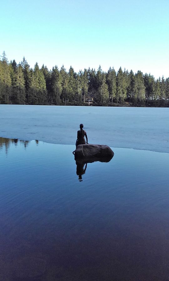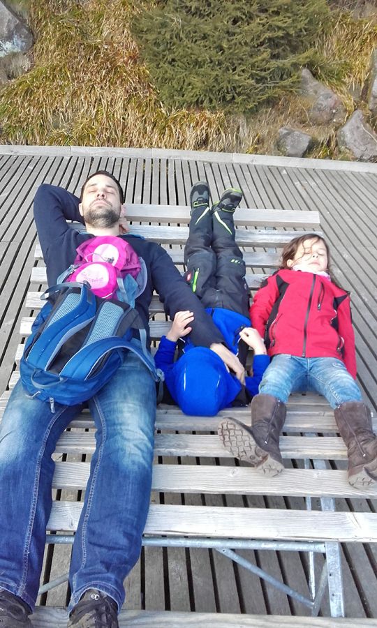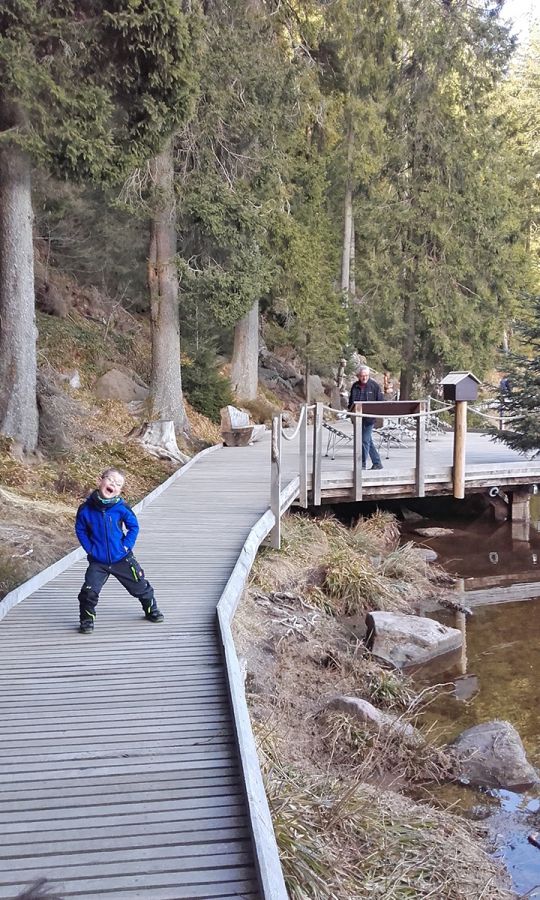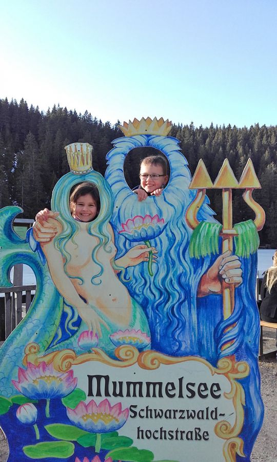 Als wir ankommen sind wir erstaunt, dass der See noch fast komplett zugefroren ist. Auf 1.036 Meter ist das aber auch kein Wunder. Wir laufen eine Runde um den See, spielen auf dem Spielplatz, machen ein Erinnerungsfoto als Mummelseegeist (weil er sich eben nicht blicken lässt) und trinken noch eine heiße Schokolade. Es ist einfach für jeden etwas dabei. Zufrieden steigen wir wieder ins Auto und fahren talwärts nach Wolfach.