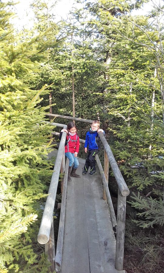 Nach demokratischer Abstimmung geht’s zum zum Lotharpfad beim Schliffkopf! Unser Kriterium für's Laufen: Bloß keine breiten Fahrwege! Da ist der Erlebnispfad im Nationalpark Schwarzwald, der über Stege, Leitern und Treppen führt, genau das Richtige.