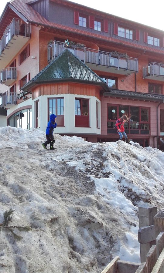 Wir merken, wie der Frühling mit der kräftigen Sonne den Winter vertreiben möchte. Doch über ein paar Schneehäufen dürfen sich die Kinder noch freuen.